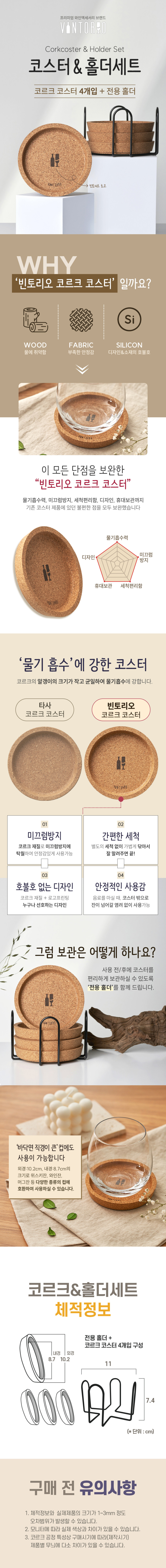 코스터&홀더세트 (코르크코스터 4개입 + 전용거치대)